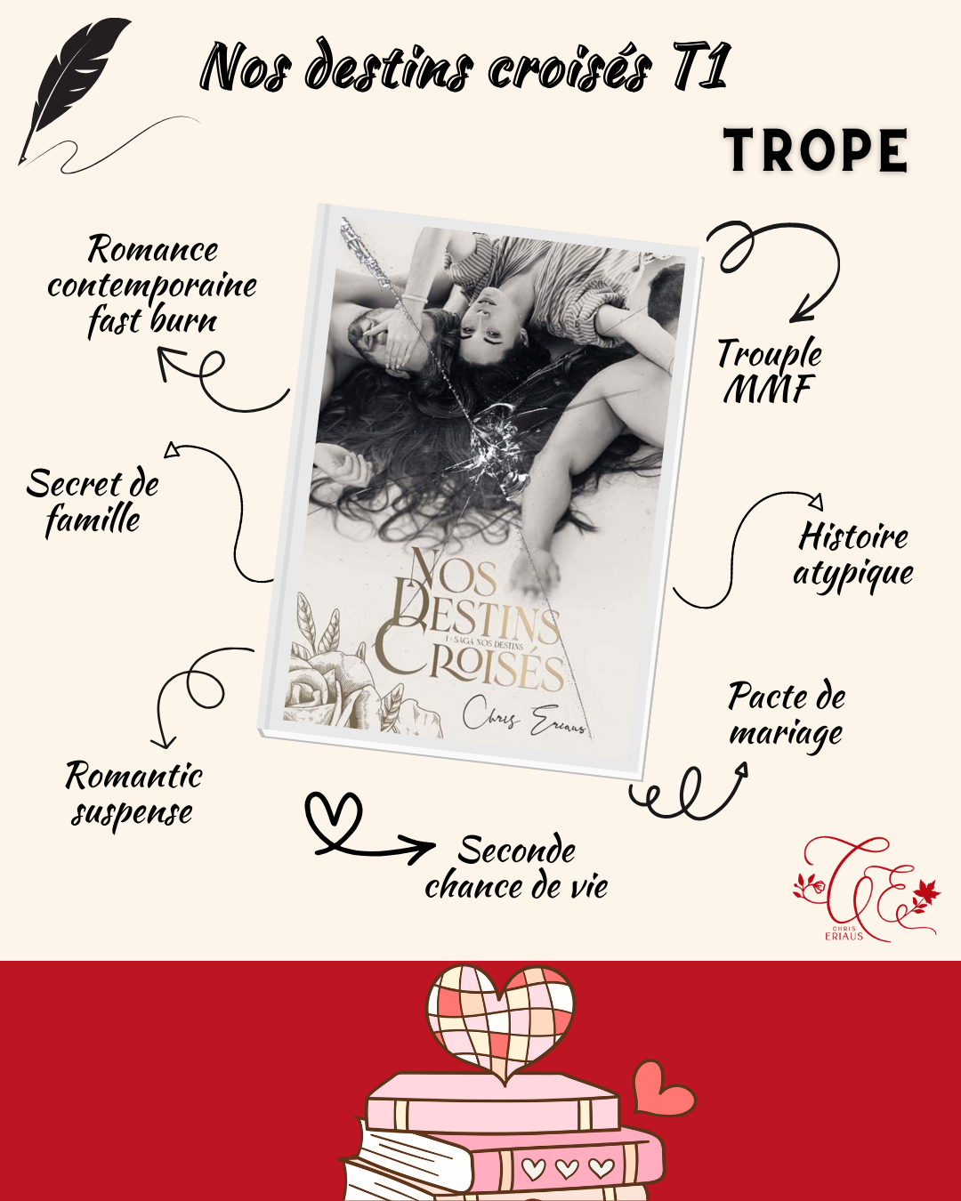 Note de l’auteure : Cette romance est un fast-burn. Il s’agit d’une romance MMF (un trouple).